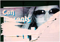 Plakatabrisse: bunt durcheinander gemischte Fragmente visueller Mitteilungen;